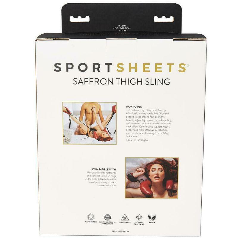 Mit dieser benutzerfreundlichen Schlinge können Sie in der perfekten Position bleiben und die besten Eindringwinkel erzielen Die weiche Nacken und Beinstütze bietet bequeme Kissen beim Zurücklehnen, während die Haltegurte Ihr eigenes Körpergewicht nutzen, um Ihre Oberschenkel hoch und kräftig zu halten. Weder Sie noch Ihr Partner müssen diese Beine mehr mit den Händen hochhalten, sodass sie sich frei zu anderen Körperteilen bewegen können. Wickeln Sie die bequemen Beinstützen um Ihre Oberschenkel oder legen Sie Ihre Füße wie Steigbügel hinein. Mit zurückgezogenen Beinen kann Ihr Partner tiefer vordringen und immer die richtige Stelle treffen, was für Sie beide zu einem befriedigenderen Erlebnis führt Die Nackenstütze sorgt dafür, dass Sie eine bessere Sicht als je zuvor haben. Der Saffron Thigh Sling hält die Beine mühelos hoch und lässt die Hände frei. Schieben Sie die gepolsterten Riemen um die Füße oder Oberschenkel. Durch Ziehen und Lösen der mit dem Nackenkissen verbundenen Gurte können Sie Ihre Beine schnell nach oben und unten verstellen. Komfort und Unterstützung bedeuten ein tieferes und effektiveres Eindringen, selbst für Personen mit Kraft oder Mobilitätseinschränkungen. Passend für Oberschenkel mit einem Umfang von bis zu 32 Zoll (81,2 cm). Weiche Nacken und Beinauflage Ermöglicht die besten Eindringwinkel Material Nickelfreies Metall, Schaumstoff, ABSKunststoff, Polyurethan