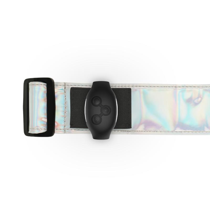 Das Geschirr hat an den Seiten ein elastisches Band, an dem die „Watchme“-Fernbedienung, eine Flasche Gleitmittel, Öl oder was auch immer Sie bevorzugen, befestigt werden kann. Dieses Gummiband wird auf Hüfthöhe auf beiden Seiten des Körpers angebracht, sodass es sowohl von Rechts- als auch von Linkshändern bequem verwendet werden kann.