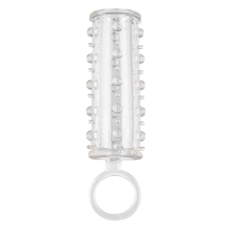 The Sensation Enhancer is a super tight, open-end extension sleeve with a sensually beaded shaft. The super-sized enhancer wraps tight around your pleasure tool to increase girth, length and pleasure.