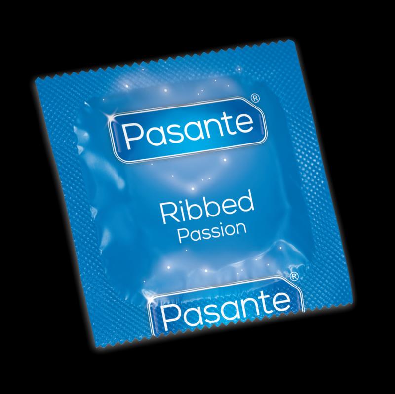 Pasante Ribbed Passion condoms have parallel sides with a defined ribbed texture for intense pleasure. Natural color with points that increase pleasure.