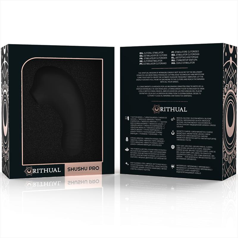 The SHUSHU PRO clitoris stimulator is the evolution of the successful SHUSHU, belonging to the renowned RITHUAL brand. This vibrator, in an elegant black tone, has been designed with an absolute focus on the satisfaction and pleasure of those who use it. Its dimensions, with a height of 11 cm and a width of 4.5 cm, make it a compact and manageable pleasure companion.