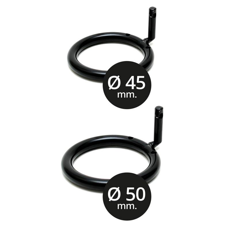 Contient 2 cadenas avec 4 clés et deux anneaux de tailles différentes, 45 mm et 50 mm.