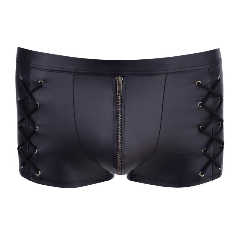 Pantalon noir délicat avec une fermeture éclair en laiton sous-jacente à l'avant. Avec laçage proéminent sur les côtés.