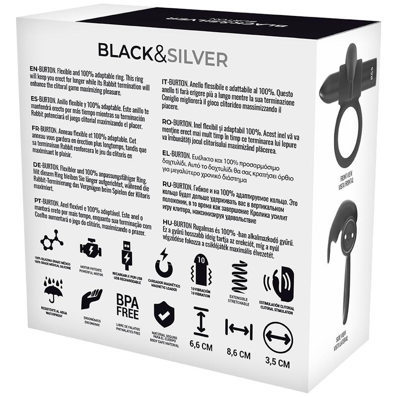 Here comes an especially sugary treat for your best friend! This wonderful male stimulator is disguised as a cock ring and wants to sweeten the hours of your heart. With the Black & Silver Ring you can properly enhance your pleasure lance and give yourself and your loved one tingling stimuli. With its rich, silky-smooth black surface made from medical silicone, the Black & Silver puts you in sensual ecstasy as soon as you put it on. The ring stretches nicely and therefore fits all sizes, just to accommodate and pleasure your penis.