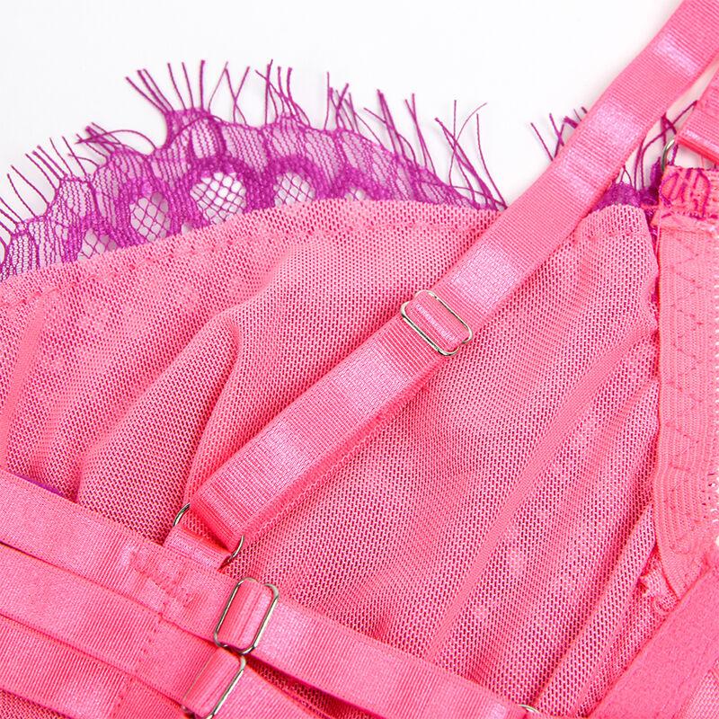 L'ensemble de lingerie en dentelle épissée à cils roses de SUBBLIME est une expression d'élégance et de sensualité. Parfait pour celles qui recherchent une pièce alliant délicatesse et confiance, cet ensemble est conçu pour vous faire sentir unique et puissante dans chaque détail.