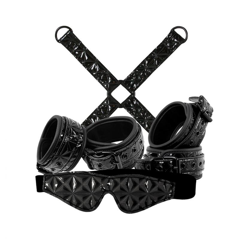 Il Kit Bondage Sinful da NS novità è la scelta ideale per gli amanti che vogliono avventurarsi nel mondo cattivo di BDSM. Il kit contiene tutto il necessario per una notte di BDSM piacere, le restrizioni di lusso che farà piacere sia a livello di entrata come amanti avanzato. Il set comprende cavigliere, polsini, una cravatta di maiale e un elegante pieghevole cieco. Tutti i prodotti nel Kit Bondage Sinful hanno una superficie trapuntata alla moda e dotate di elementi di fissaggio regolabili. Confezionato in una scatola contemporaneo, questa grande kit è un colpo d and 39occhio assoluto e sicuramente stuzzicherà gli amanti con il suo contenuto viziosa.