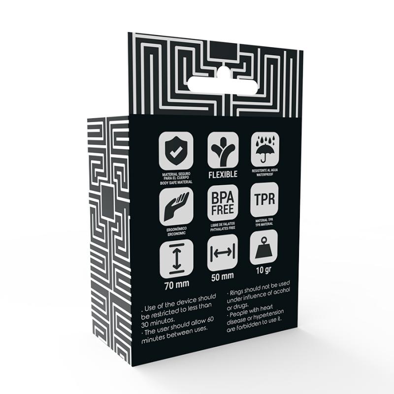 Questo set di due anelli è appositamente progettato per essere utilizzato contemporaneamente alla base del pene e alla base dei testicoli.
