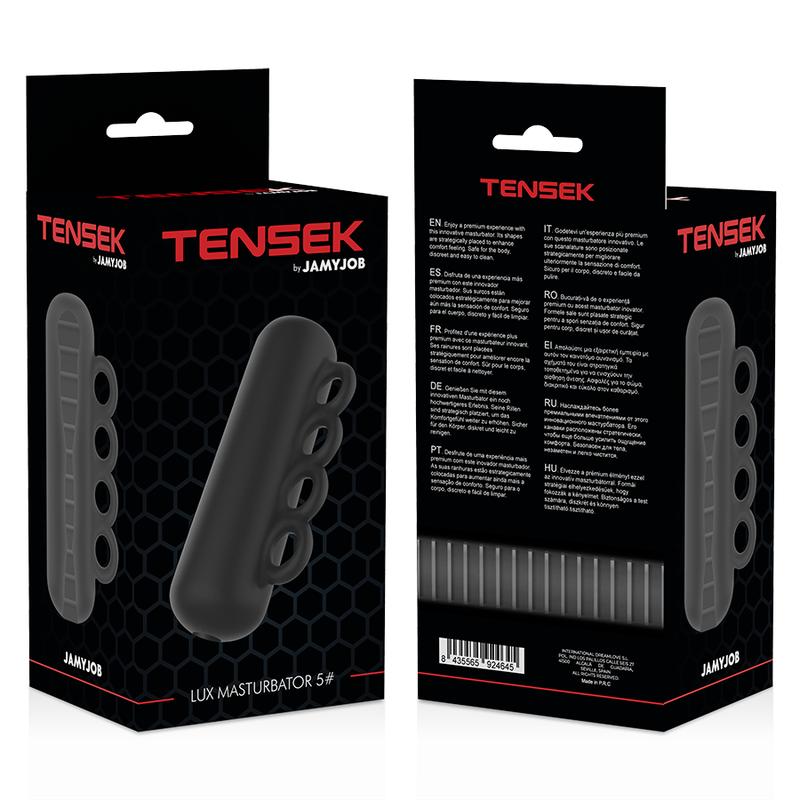 Goditi un'esperienza completamente nuova. L'innovativo modello TENSEK 5 si unisce alla linea di masturbatori JAMYJOB e presenta un esclusivo design completamente nero con facile presa.