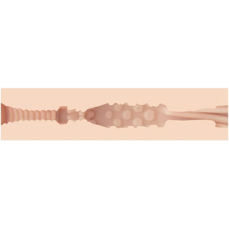 Inside, sleeves are made with realistic material looks like real skin and it addapt to the temperature of your body so will be more realistic. Its anus design is so amazing inside and outside. Inside is an exact replic of this actress so it make it an exclusive and unique piece.