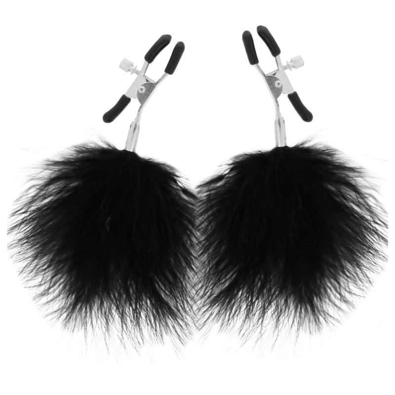 Morsetti per capezzoli completamente regolabili per lui o lei. Dispone di morbidi cuscinetti morbidi per un maggiore comfort e possono essere rimossi. Sono decorati con due eleganti pompon.