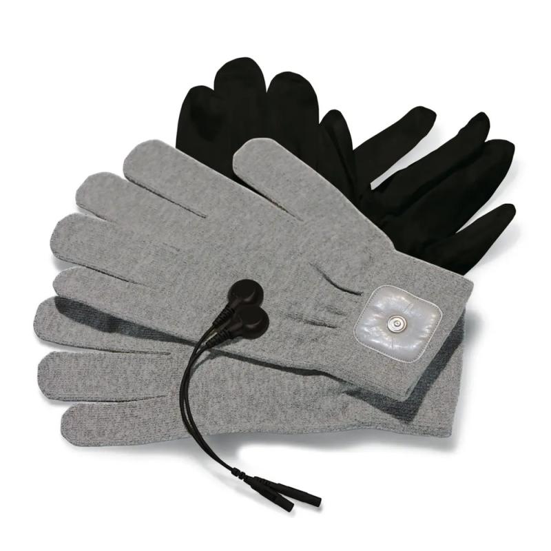 These electro conductive gloves are perfect for tingling electro sex strokes. The enclosed vinyl gloves need to be worn under the Magic Gloves, in order to isolate the own hands against the electricity.