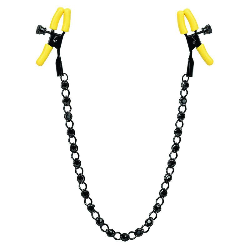 Streef naar eindeloos genot en omarm de prikkelende stimulatie van Boundless Nipple Teasers. Ervaar intensere sensaties met de 2 volledig verstelbare tepelklemmen, sensuele ketting en fonkelende kristallen. Bereik nieuwe niveaus van speelplezier met de verstelbare klemmen. Bevestig de ondeugende clips aan je lichaam en geniet van elke pijn- en genotsuitbarsting. De klem heeft een verstelbare spanning waarmee u elk lichaamsdeel op een speelse manier kunt stimuleren. Naarmate de spanning toeneemt, wordt het tintelen intenser bij elke draai aan de knop. Dit is het ultieme speeltje voor tepelstimulatie. Met plagende klemmen kun je verwachten dat de gevoeligheid van de tepels wordt versterkt en de algehele opwinding toeneemt. Deze eenvoudig te gebruiken tepelplaagjes zijn voor iedereen geschikt. De twee verstelbare klemmen zijn gemaakt van lichaamsveilige materialen en voorzien van zachte, comfortabele siliconen pads.