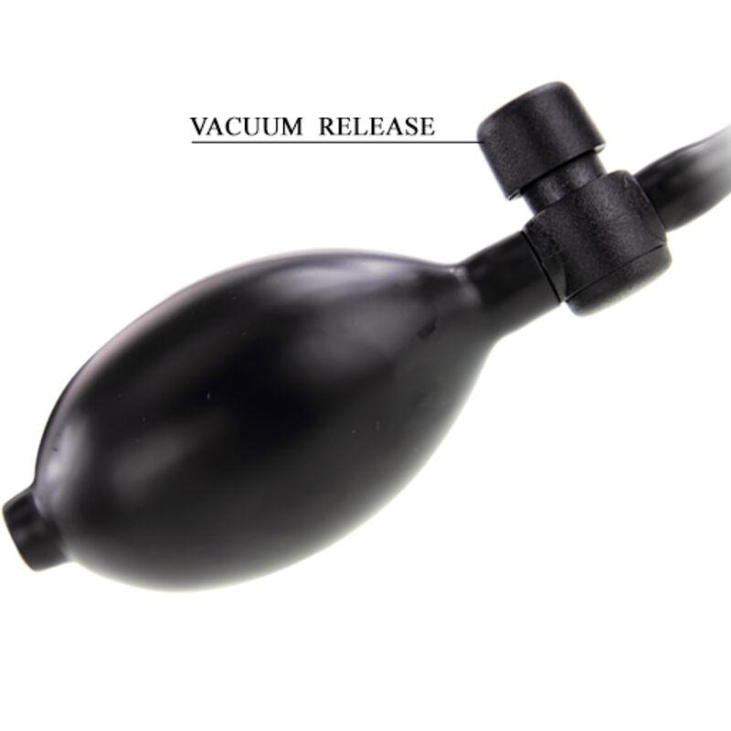 Ten długi wibrator szybko się napompowuje za pomocą ręcznej pompki. Praktyczny zawór gwarantuje, że wibrator pozostanie napompowany podczas zabawy i szybko spuści powietrze, gdy skończysz. Zalecamy włożenie wibratora przed jego napompowaniem.