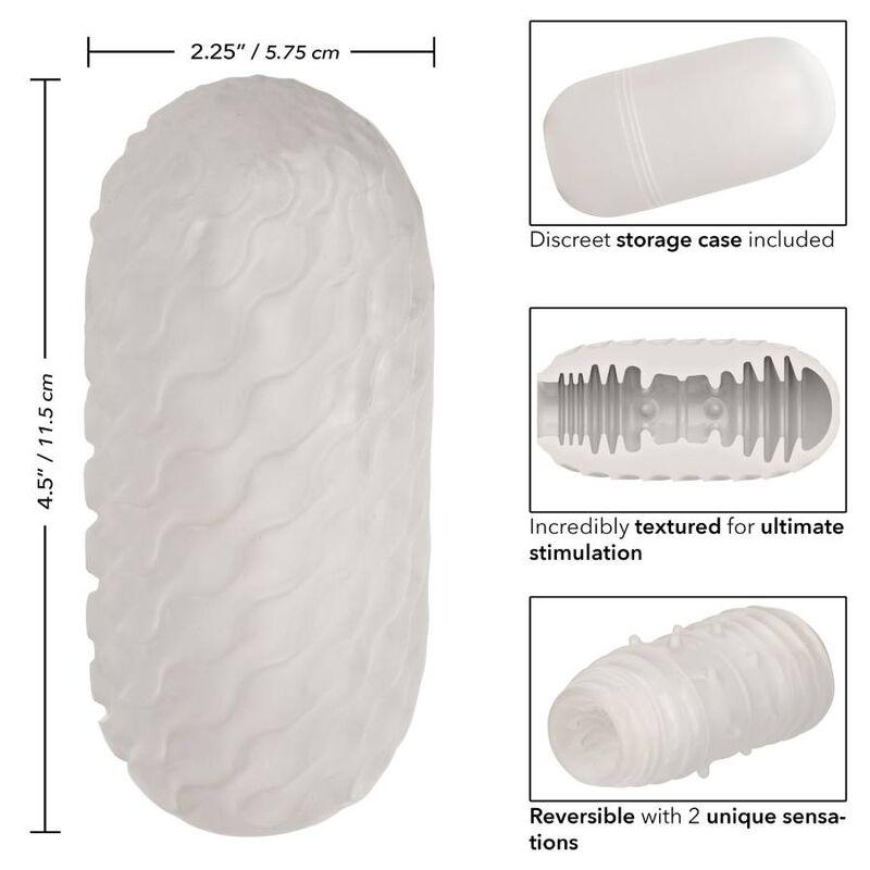 Nieograniczona przyjemność jest w Twoich rękach dzięki niewiarygodnemu dwustronnemu obciągaczowi Boundless. Stroik premium rozpieszcza Twoją przyjemność dzięki dwustronnej teksturowanej stymulacji, zamkniętej konstrukcji i wygodnemu etui do przechowywania. Dręczaj i zadowalaj wyjątkową, dwustronną konstrukcją, w tym miękką falującą powierzchnią i drażniącym żebrowanym wzorem zapewniającym wyjątkowe wrażenia podczas głaskania. Ciesz się wybuchową przyjemnością, a zamknięta konstrukcja zapewnia doskonałe ssanie. Niezależnie od tego, czy odpoczywasz w domu, czy gdziekolwiek indziej, kompaktowa konstrukcja 4,5 x 11,5 cm i wygodne etui sprawiają, że jest to dokuczliwy towarzysz podróży, którego pragniesz. Premium TPR jest bezzapachowy, nie zawiera ftalanów i nie wymaga konserwacji, dzięki czemu Twoje najbardziej wrażliwe miejsca będą szczęśliwe i zdrowe.