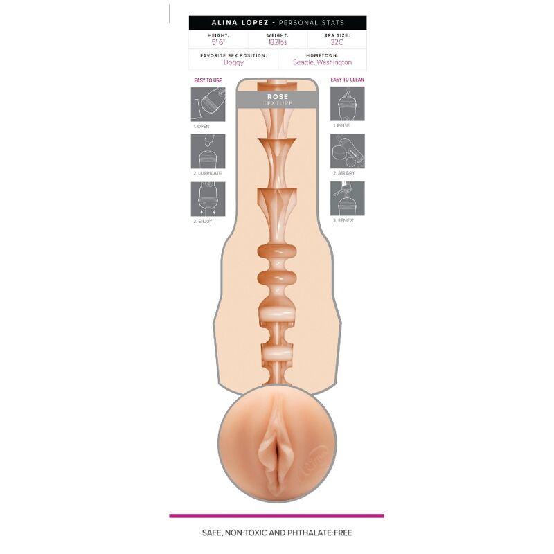 Inside, sleeves are made with realistic material looks like real skin and it's addapted to the temperature of your body so it will be more realistic. Its design is so amazing inside and outside!. Inside is an exact replic of this actress anus so it makes an exclusive and unique piece.