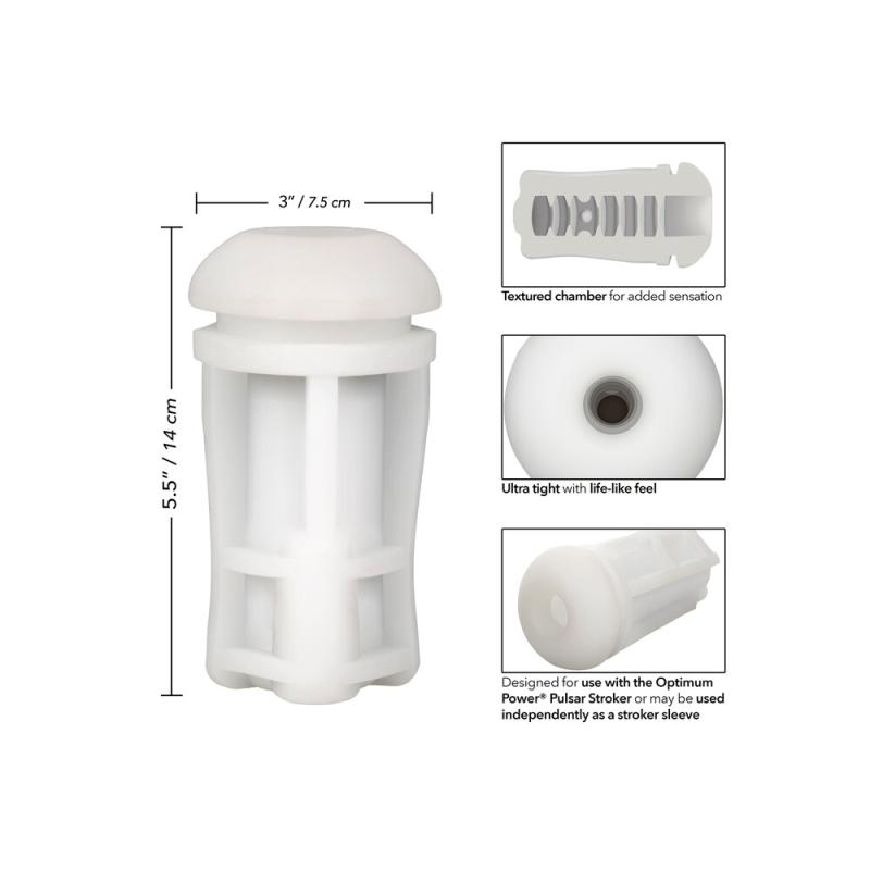 This premium sleeve fits into the Optimum Power Pulsar Stroker but can be used independently for a passionate stroking experience.