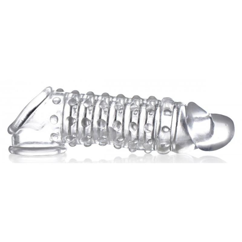 Add length and girth with this super soft enhancer sleeve! This bumpy sleeve is soft and flexible for a snug yet comfortable hug on your package. Externally textured with bumps and ridges to tantalize your lover's insides with internal texturing for your own pleasure. This enhancer sleeve is perfect for couples who want to experiment with a bigger shaft without discomfort and as soon as the mood strikes!