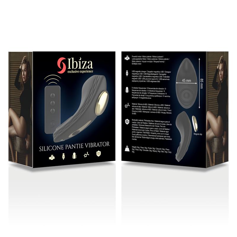 With the practical magnet, Ibiza™ Silicione Panty vibrator attaches discreetly to the panties and stimulates the clitoris thanks to its ergonomic shape and its intense vibrations. The bodysafe silicone for the skin and the remote control from the completely discreet remote control result in a unique toy.