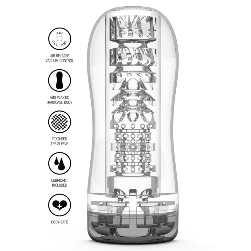 The HERO's textured sleeve creates a tantalizing sucking sensation which can be controlled by the airhole on the top of the tube, while the transparency allows you to monitor every stroke which will elevate your masturbation experience to new heights of pleasure.