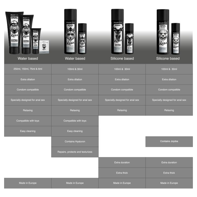 O Anal Relaxing com Jojoba da Black Hole é um gel deslizante premium especialmente formulado para aumentar o conforto e a segurança durante o sexo anal. Graças à sua base de silicone de longa duração e ao óleo de jojoba, este produto não só proporciona uma lubrificação superior como também ajuda a relaxar suavemente a área íntima, proporcionando uma experiência mais prazerosa e sem desconforto. Descubra o prazer sem limites com o gel deslizante Anal Relaxing com Jojoba da Black Hole. Disponível em dois tamanhos práticos (100 ml e 30 ml), este lubrificante é o parceiro ideal tanto para brincadeiras em casa como para aventuras em qualquer lugar.