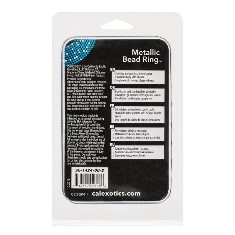 Stretchy enhancement ring with metal beads for stimulating tactile sensations. (Realistic dildo not included)